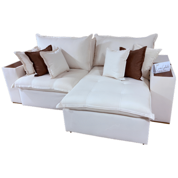 Sofá Cama Thebas/Gabriela 2,30 m Linho Cru 304/Courino Dalas – ZARAT ESTOFADOS