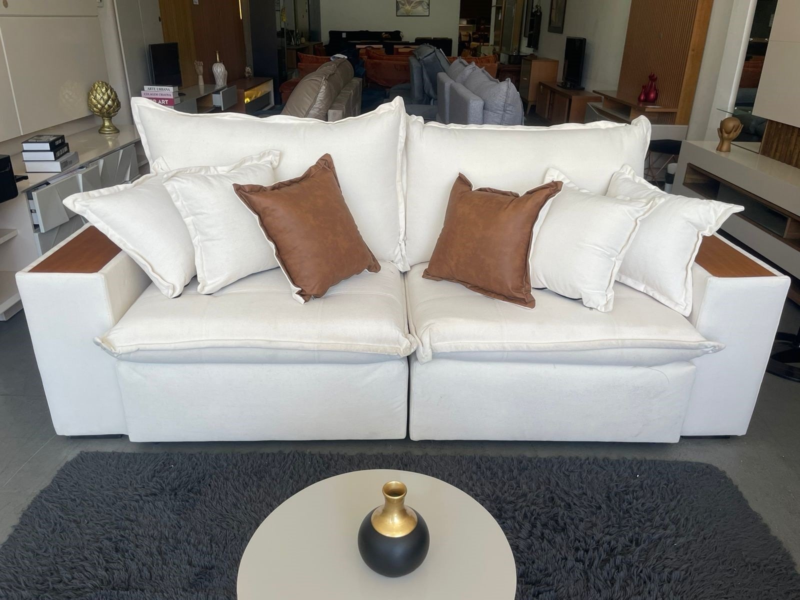 SOFA CAMA TEBAS/THEBAS/GABRIELA 2,90 M LINHO BEGE 313/COURINO DALAS – ZARAT ESTOFADOS