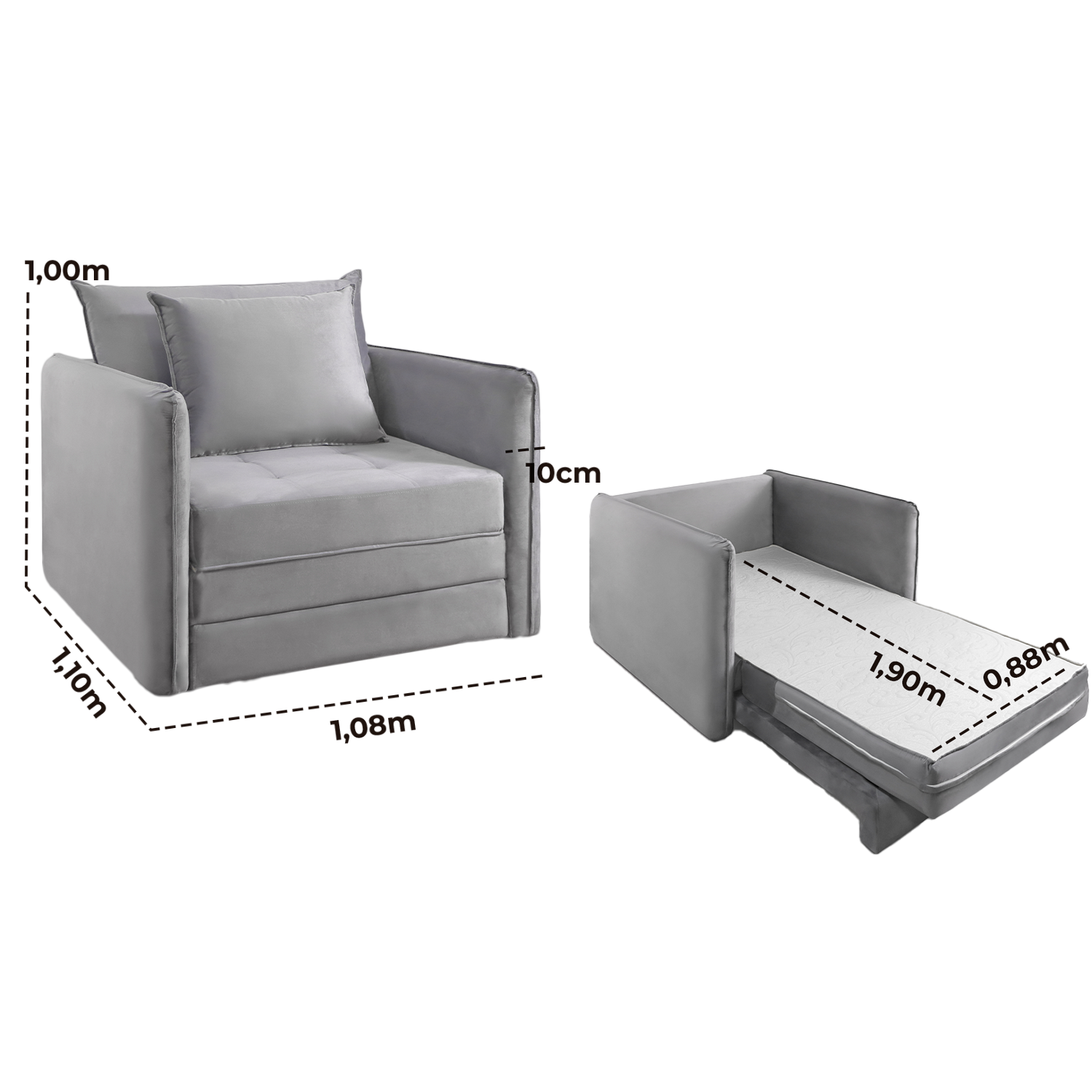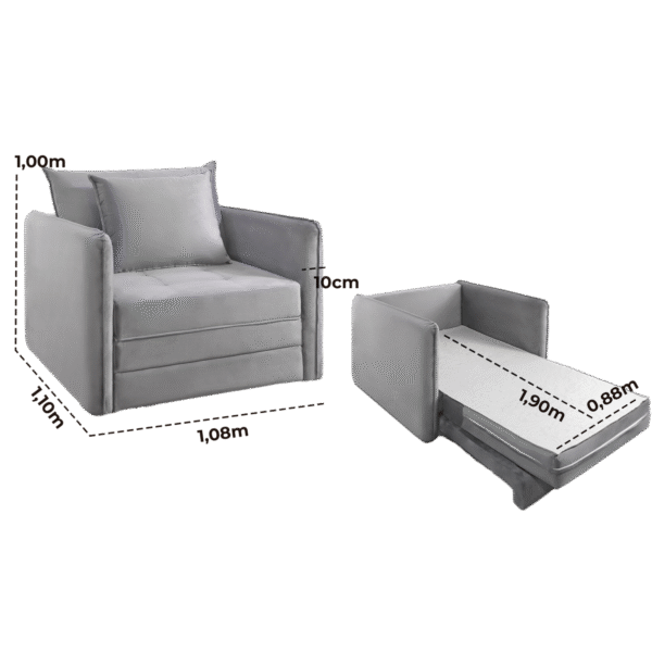Sofá Cama Solteiro Noronha Linho Cinza 507 – JC ESTOFADOS
