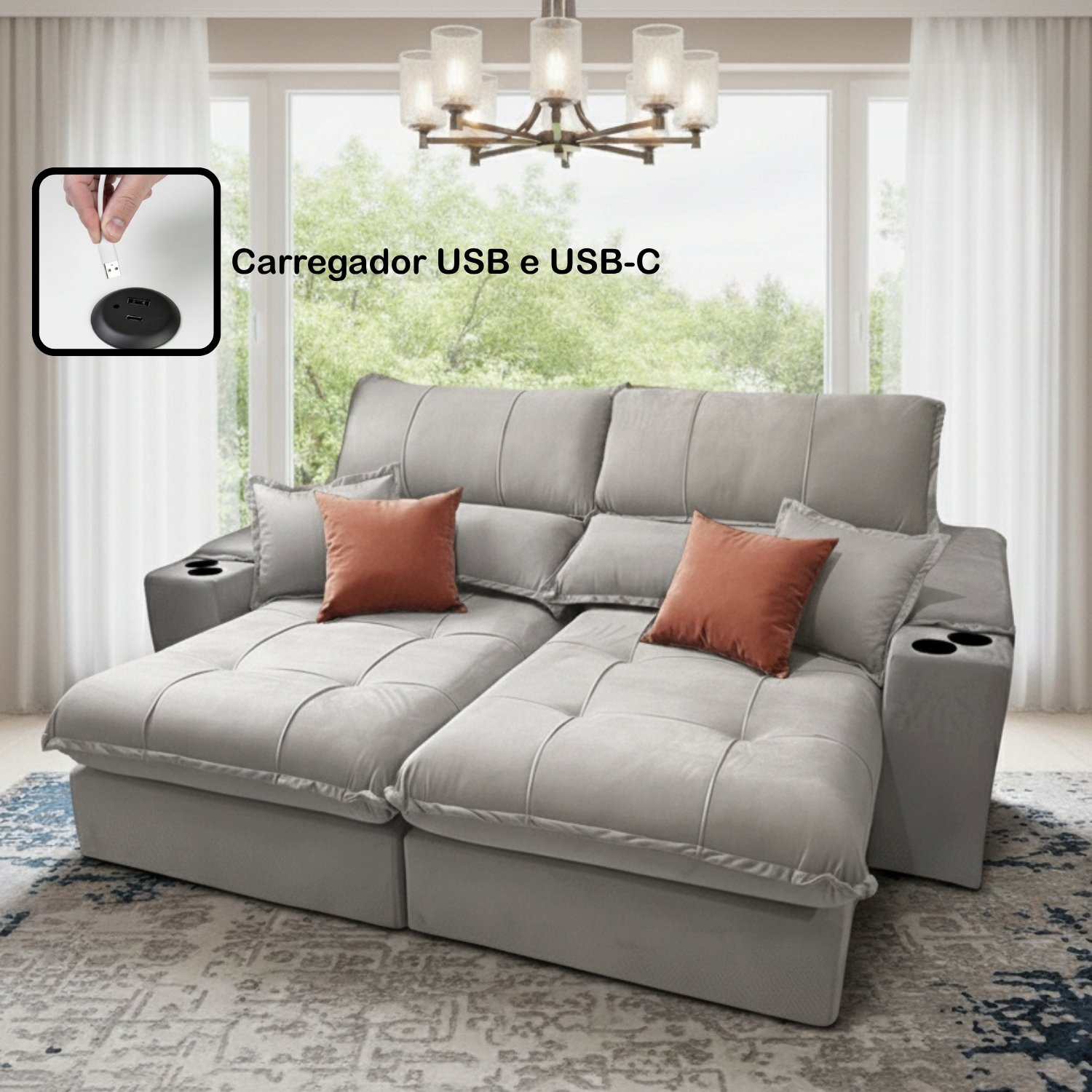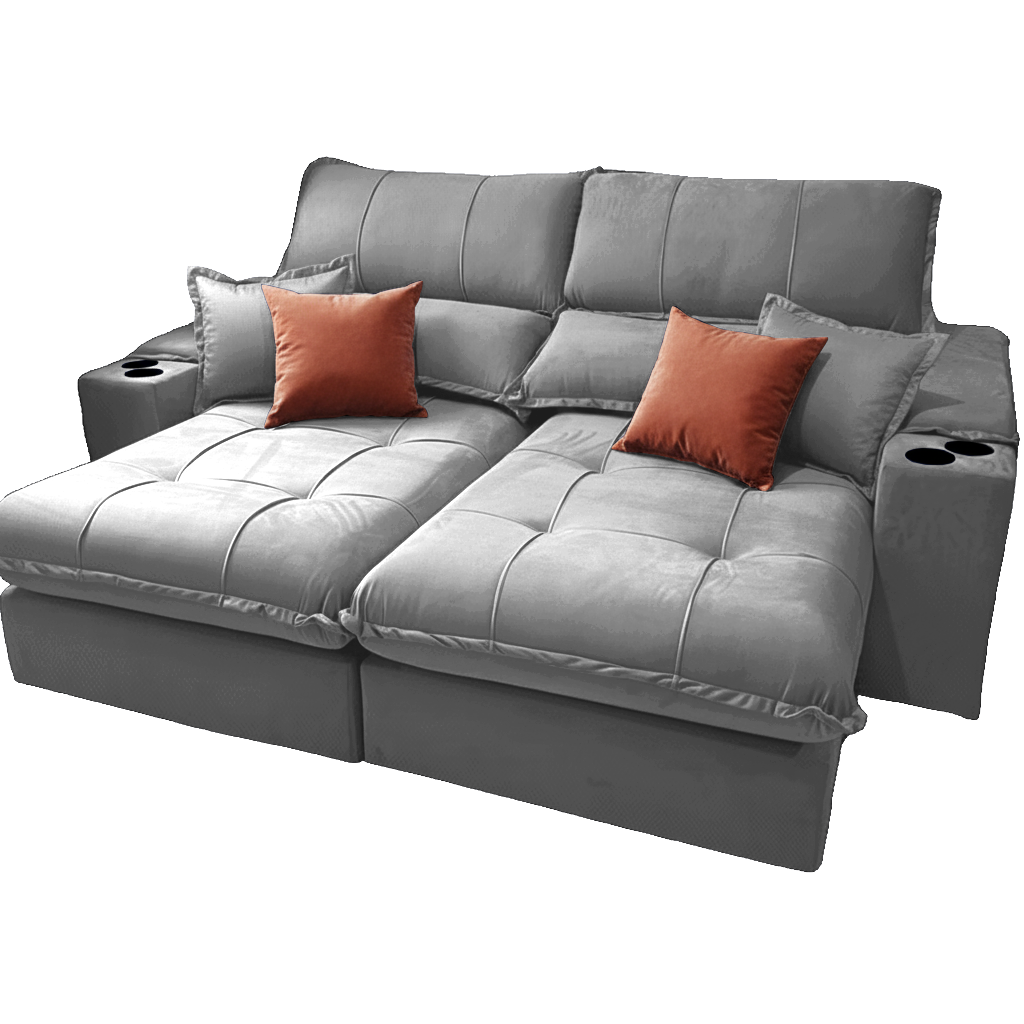 Sofá Retrátil e Reclinável Afrodite Slim 2,50 m Veludo Cinza Prata 107 – ZARAT ESTOFADOS