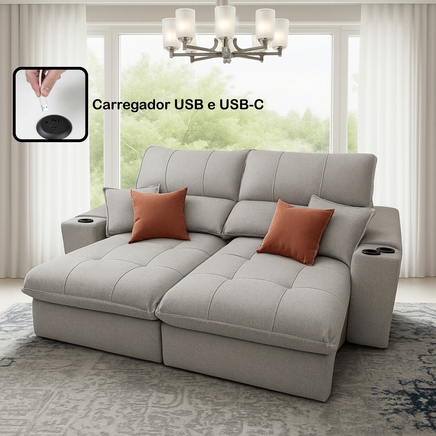 Sofá Retrátil e Reclinável Afrodite Slim 2,90 m Linho Cinza 302 Confort 07 – ZARAT ESTOFADOS