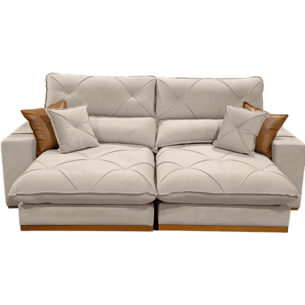 Sofá Retrátil e Reclinável Aquiles/Gran Bello 2,10 m Veludo Bege 106 – ZARAT ESTOFADOS