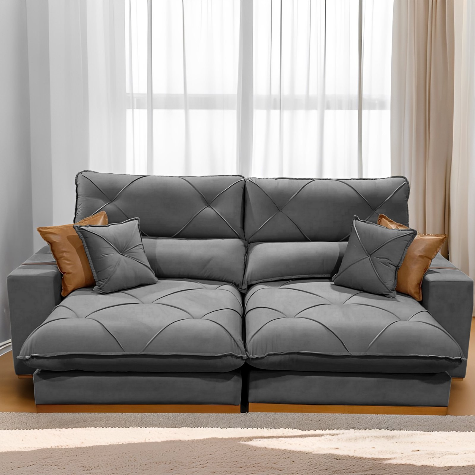 Sofá Retrátil e Reclinável Aquiles/Gran Bello Veludo Cinza 101 – ZARAT ESTOFADOS