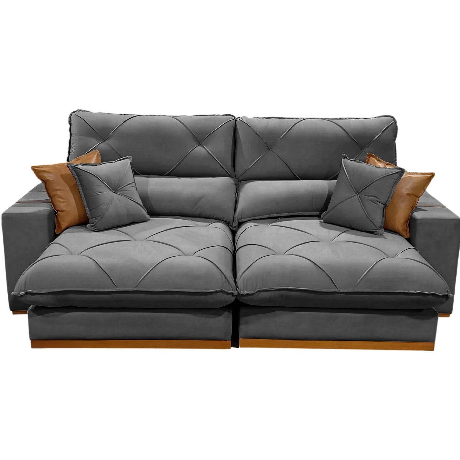 Sofá Retrátil e Reclinável Aquiles/Gran Bello 2,50 m Veludo Cinza 101 – ZARAT ESTOFADOS