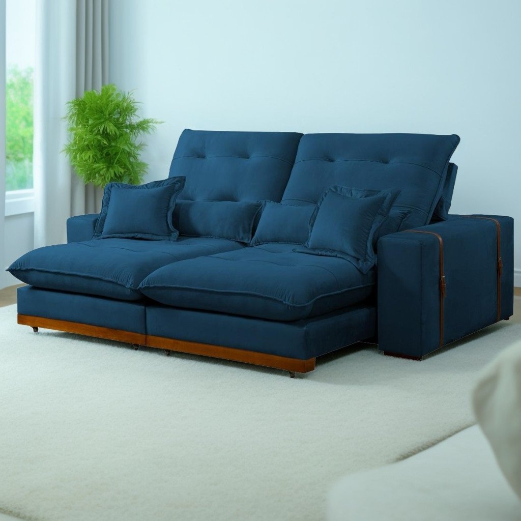 Sofá Retrátil e Reclinável Arthur/Toronto 2,90 m Azul 4061 – D’VITRINE ESTOFADOS