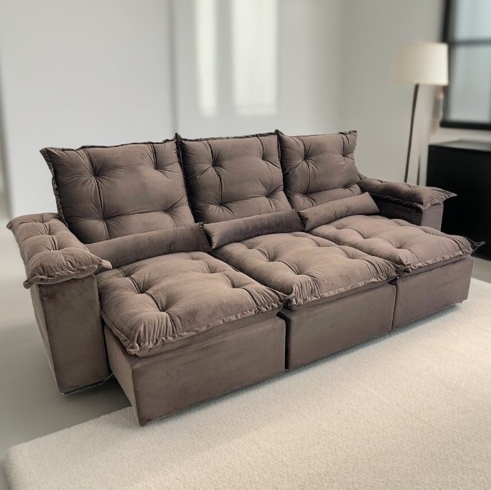 Sofá Retrátil e Reclinável Atenas 2,70 m Marrom – QUINE ESTOFADOS