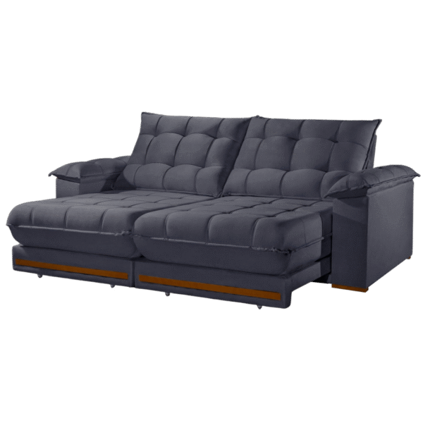 Sofá Retrátil e Reclinável Barcelona 2,50 m Veludo Cinza Grafite – ESTOFADOS TEIXEIRA