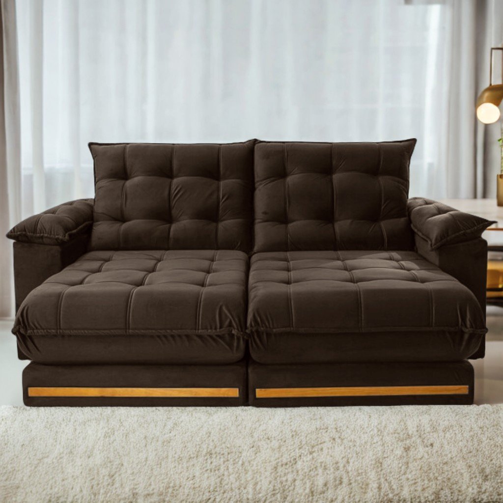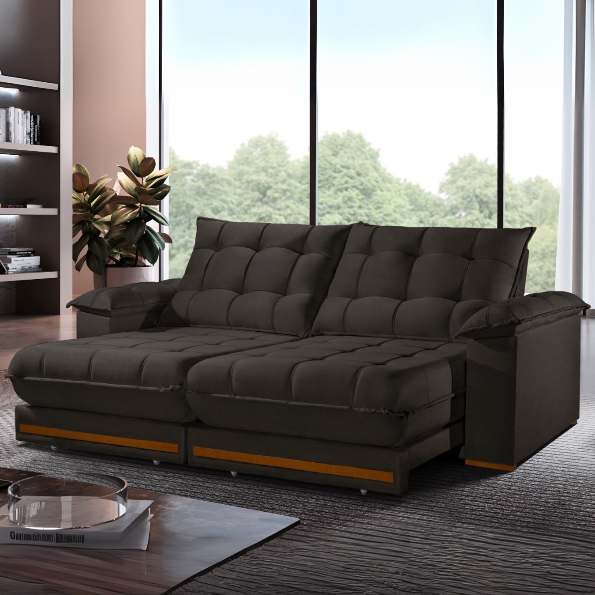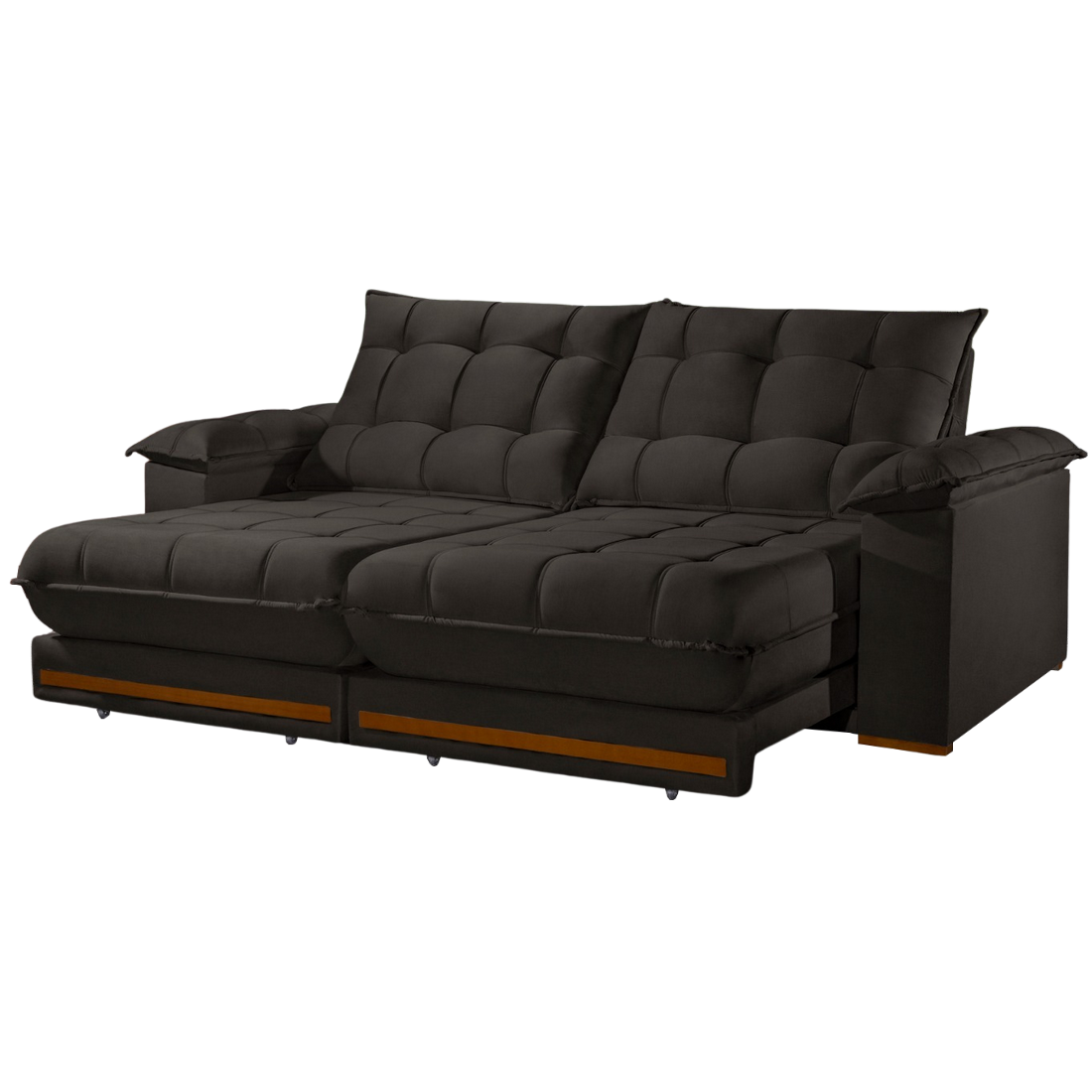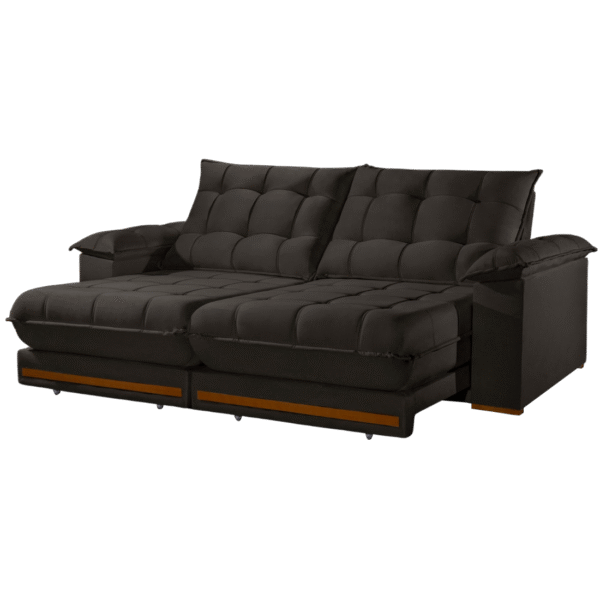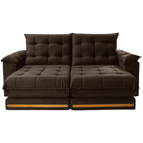Sofá Retrátil e Reclinável Barcelona 2,50 m Veludo Marrom – ESTOFADOS TEIXEIRA