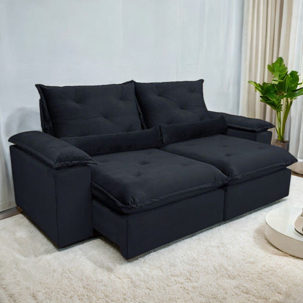 Sofá Retrátil e Reclinável Brasão 2,00 m Veludo Preto – MD ESTOFADOS
