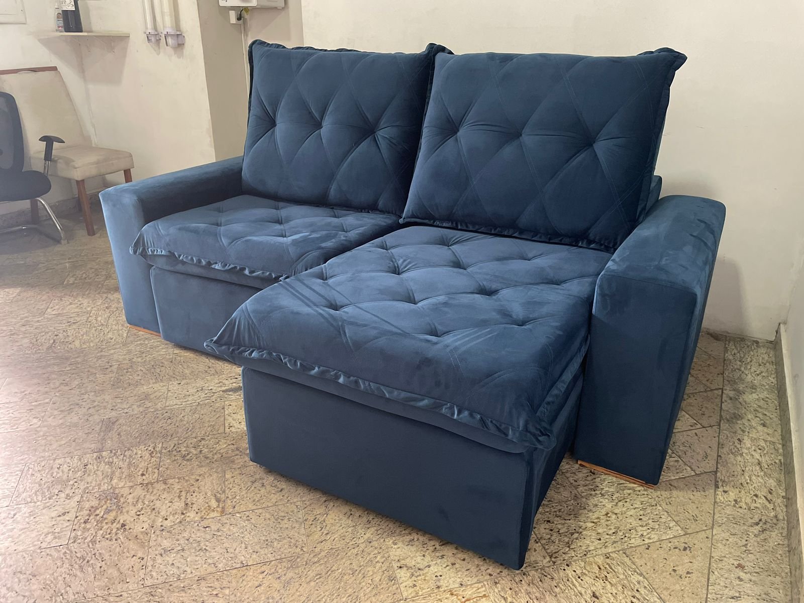 Sofá Retrátil e Reclinável Califórnia 2,50 m Azul – JC ESTOFADOS