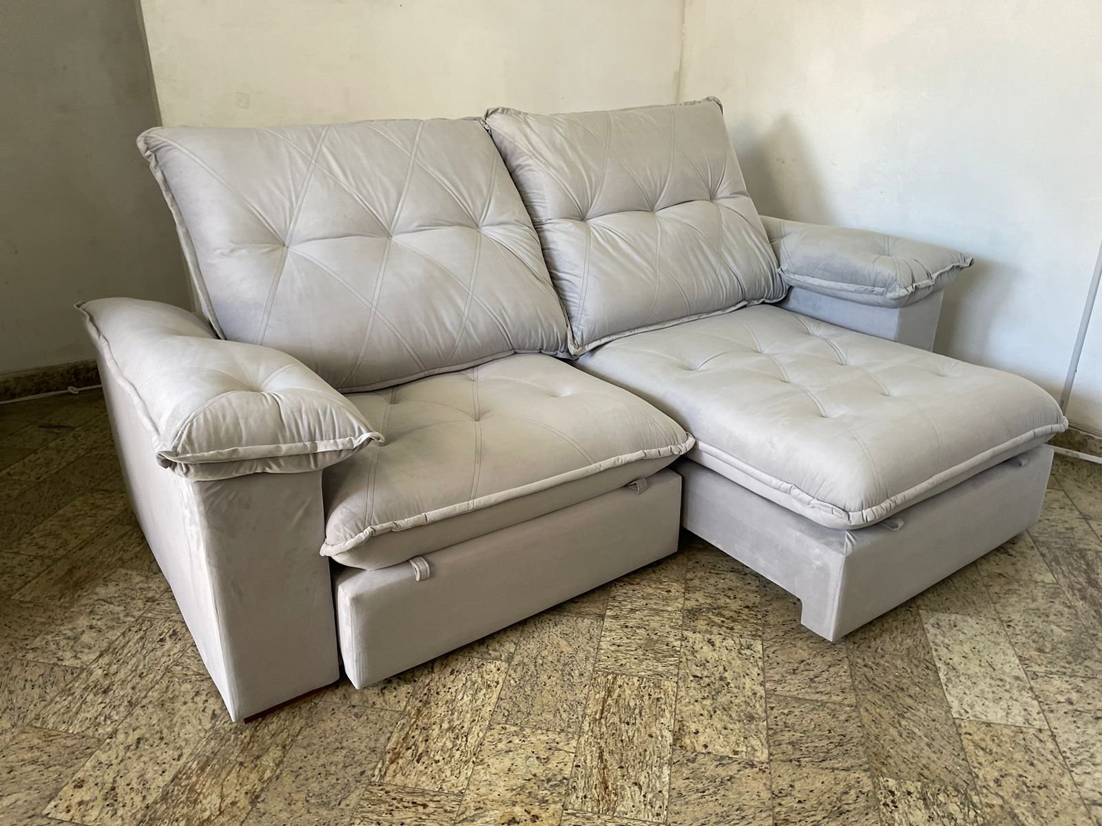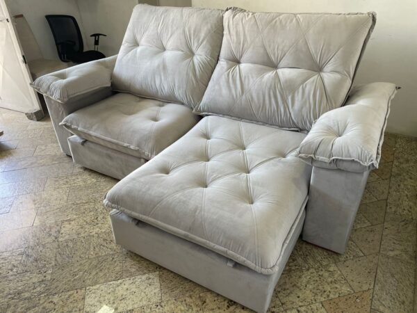 Sofá Retrátil e Reclinável Corvette 2,50 m Prata – D’VITRINE ESTOFADOS