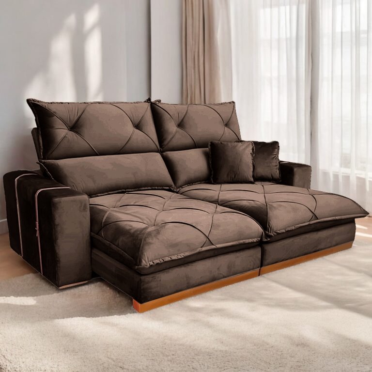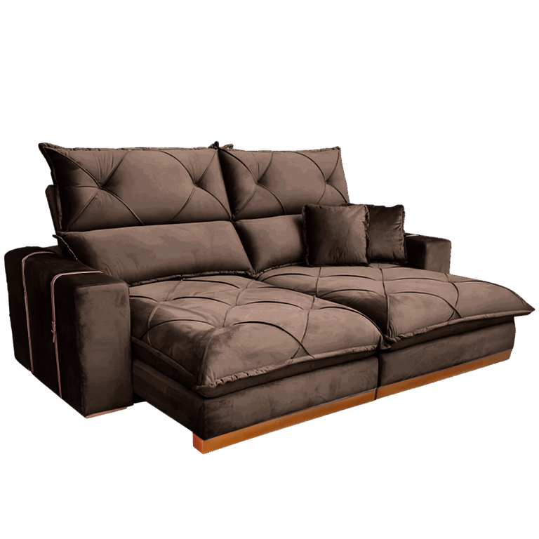 Sofá Retrátil e Reclinável Gran Bello 2,00 m Veludo Marrom – QUINE ESTOFADOS