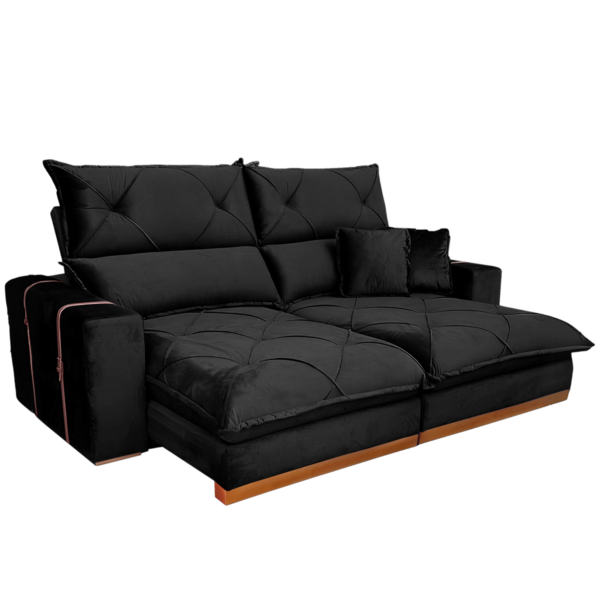 Sofá Retrátil e Reclinável Gran Bello 2,30 m Veludo Preto – QUINE ESTOFADOS