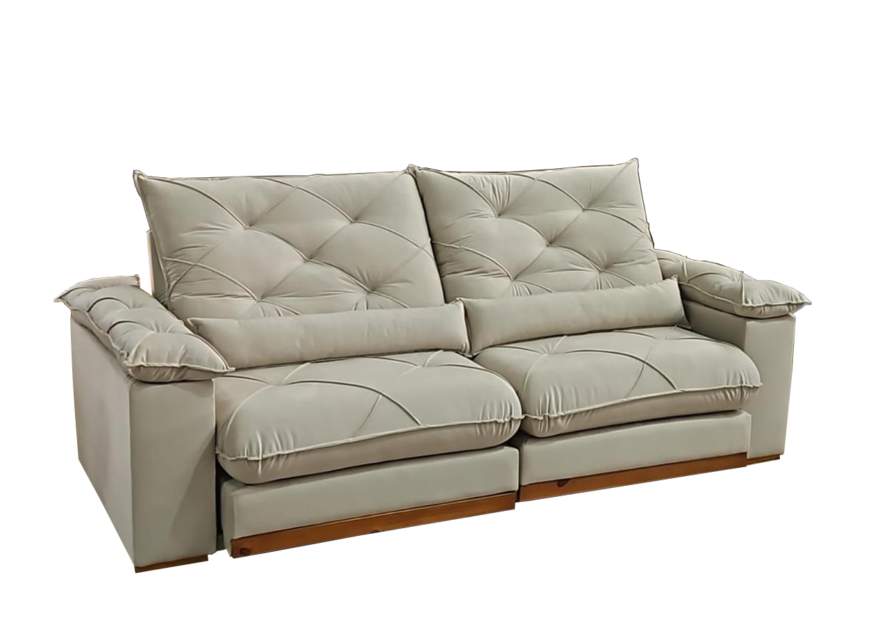 Sofá Retrátil e Reclinável Gran Paladium (Pillow) 2,50 m Veludo Bege – IMPÉRIO DECOR