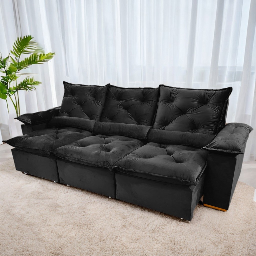 Sofá Retrátil e Reclinável Grécia 2,70 m Preto – QUINE ESTOFADOS