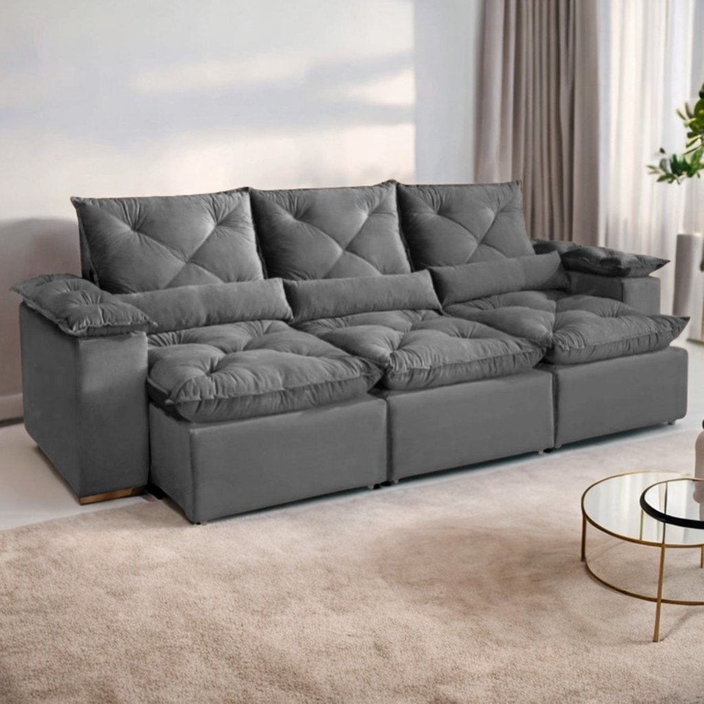 Sofá Retrátil e Reclinável Grécia Cinza – KASA COMIGO ESTOFADOS