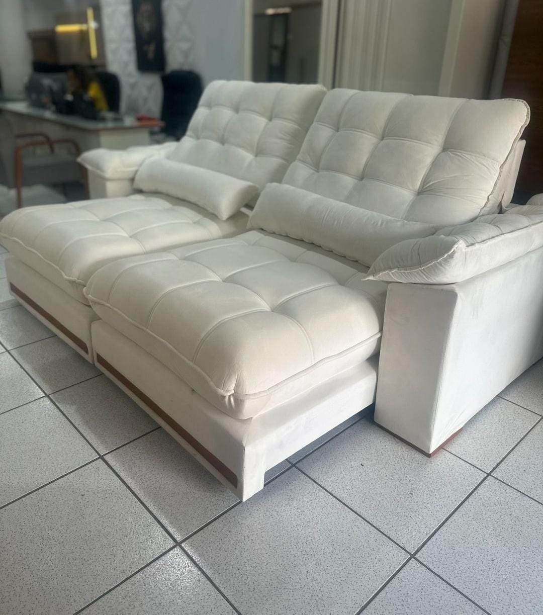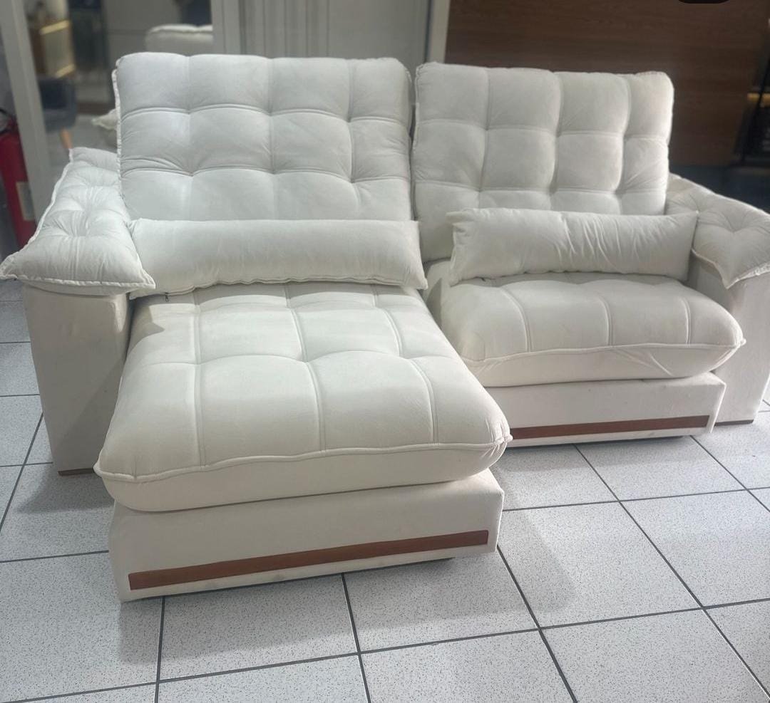 Sofá Retrátil e Reclinável Hércules 2,90 m Veludo Marfim – VICAM ESTOFADOS