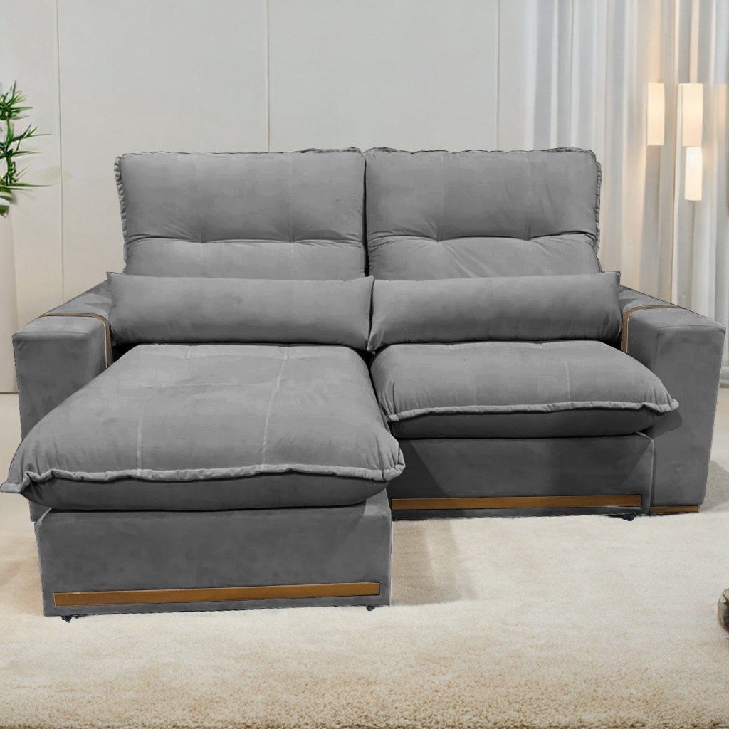 Sofá Retrátil e Reclinável Hórus 2,00 m Veludo Cinza 101 – ZARAT ESTOFADOS