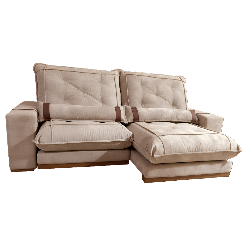 Sofá Retrátil e Reclinável Ibiza/Poseidon 2,50 m Veludo Bege 106 – ZARAT ESTOFADOS