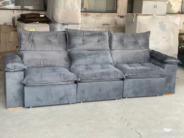 Sofá Retrátil e Reclinável Imperial 2,75 m Veludo Jolie Cinza 08 – IMPERIAL DECOR