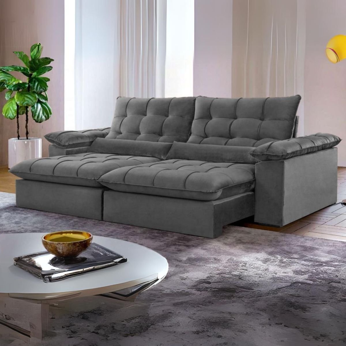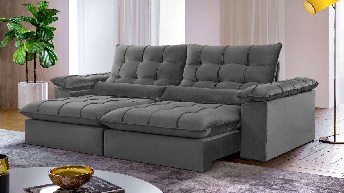 Sofá Retrátil e Reclinável Malibu 2,30 m Cinza – VIVAZ ESTOFADOS