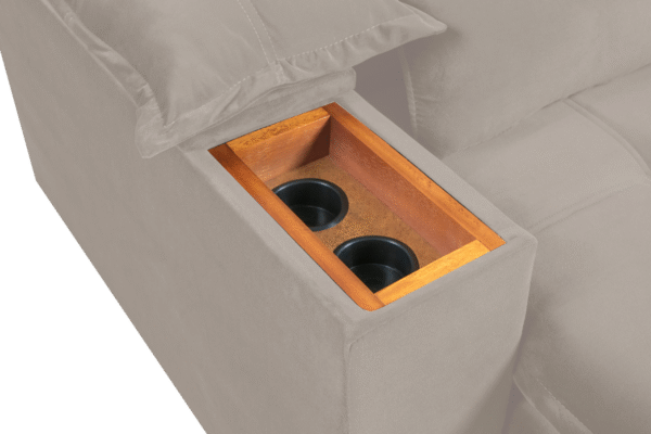 – Bandeja embutida retrátil com dois porta copos nos dois braços