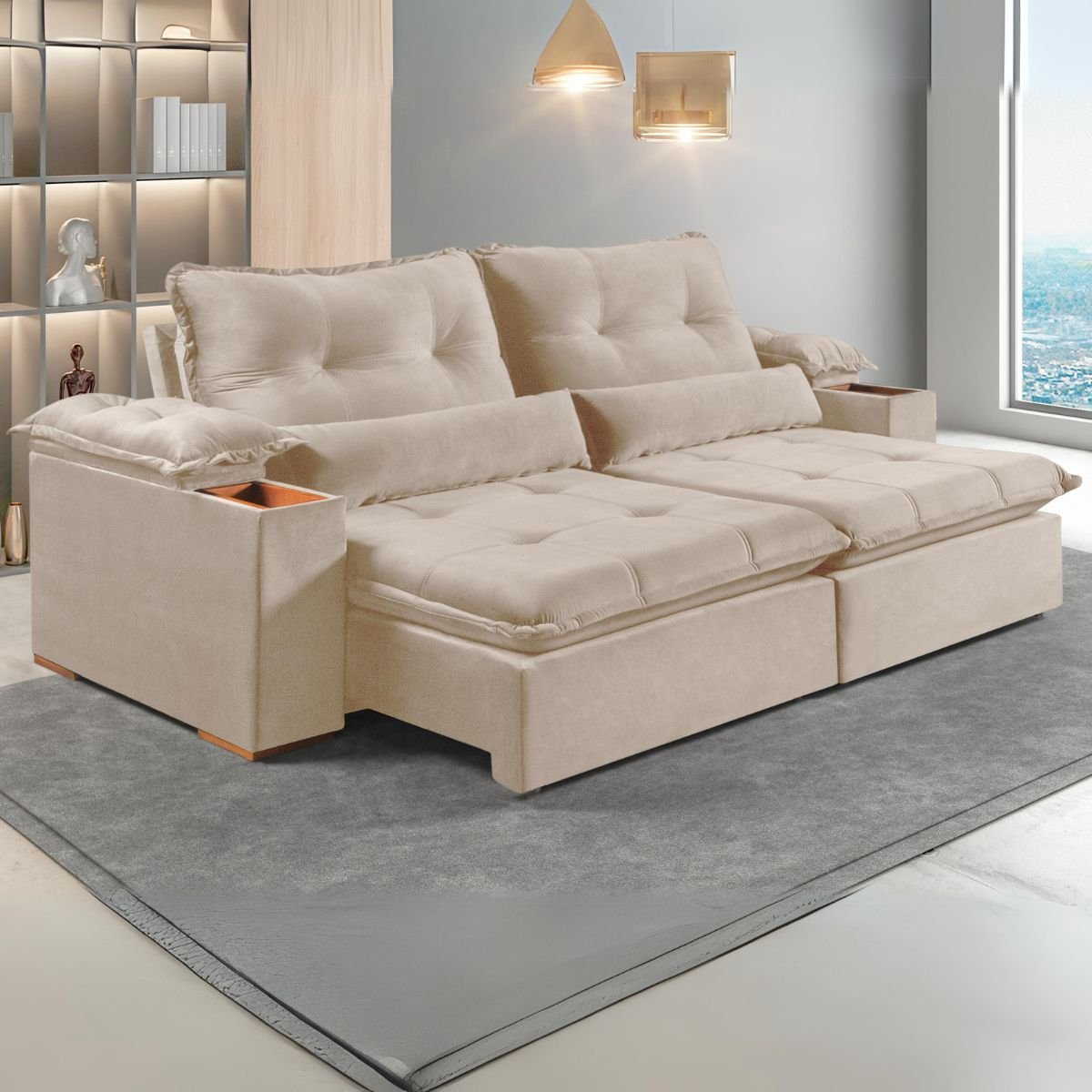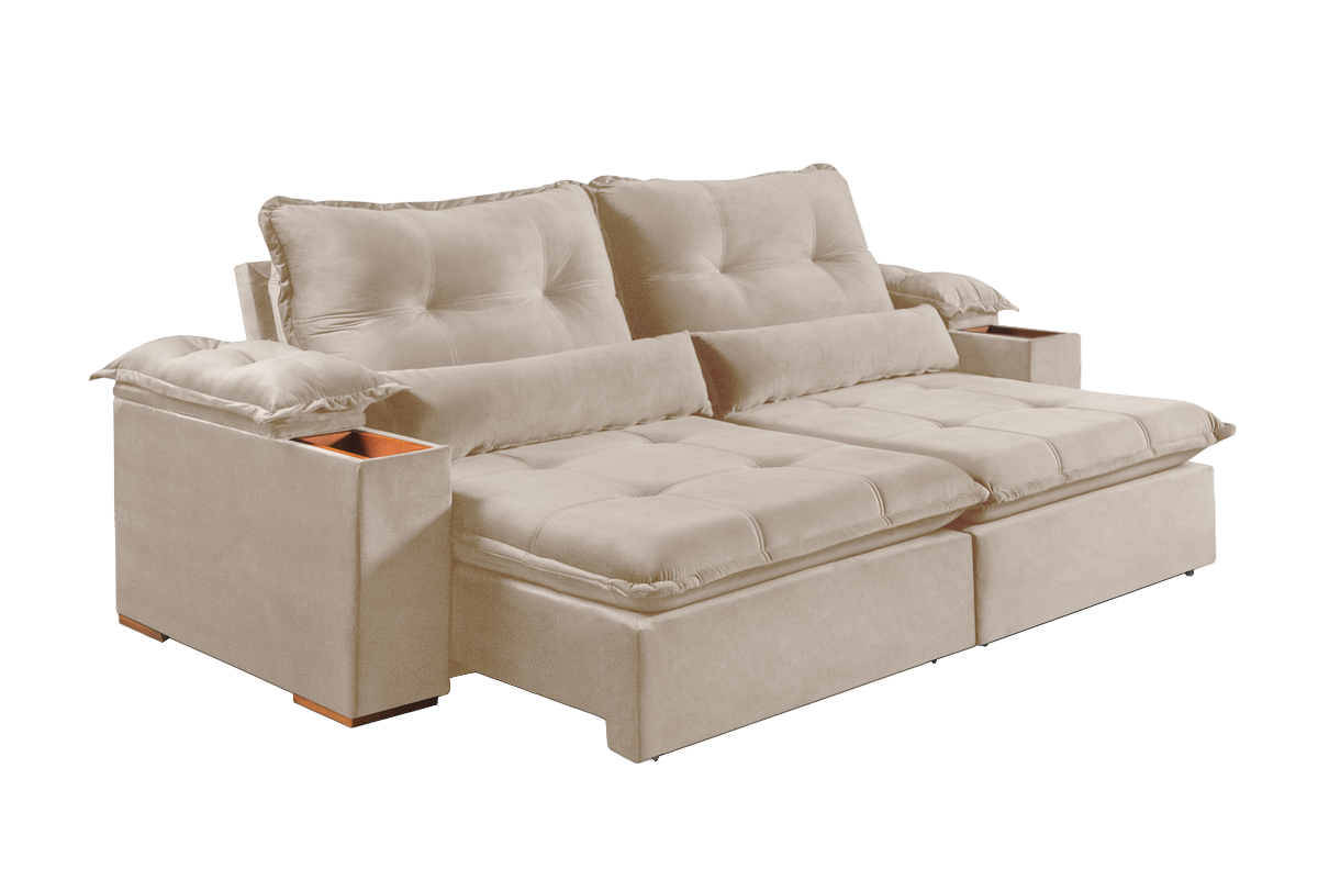 Sofá Retrátil e Reclinável Marrocos 2,50 m Veludo Marfim 5006 – VICAM ESTOFADOS
