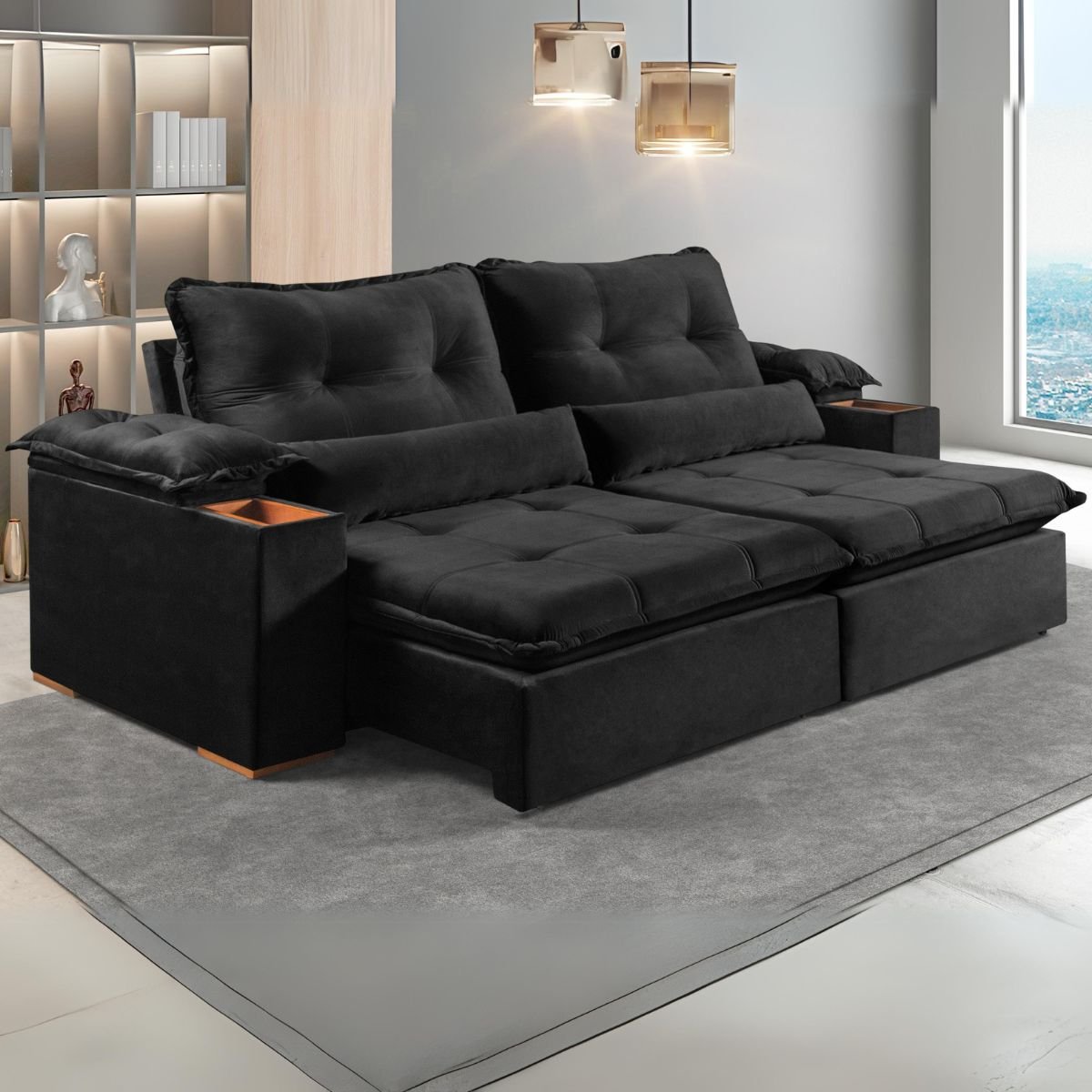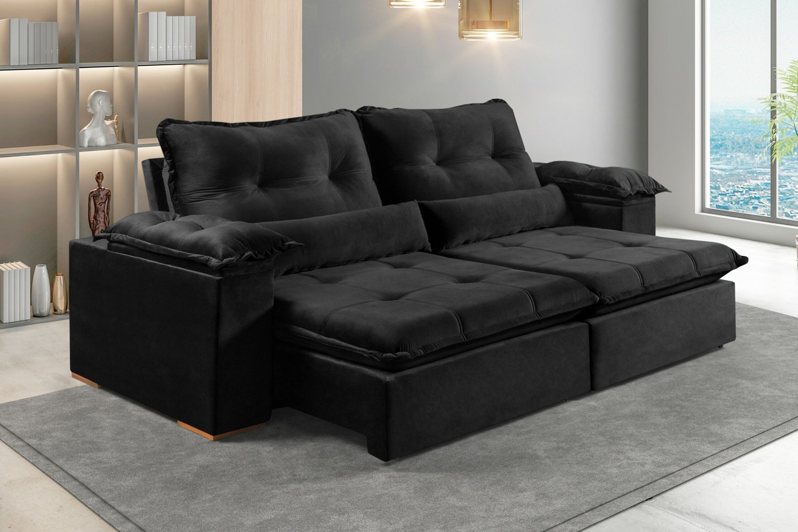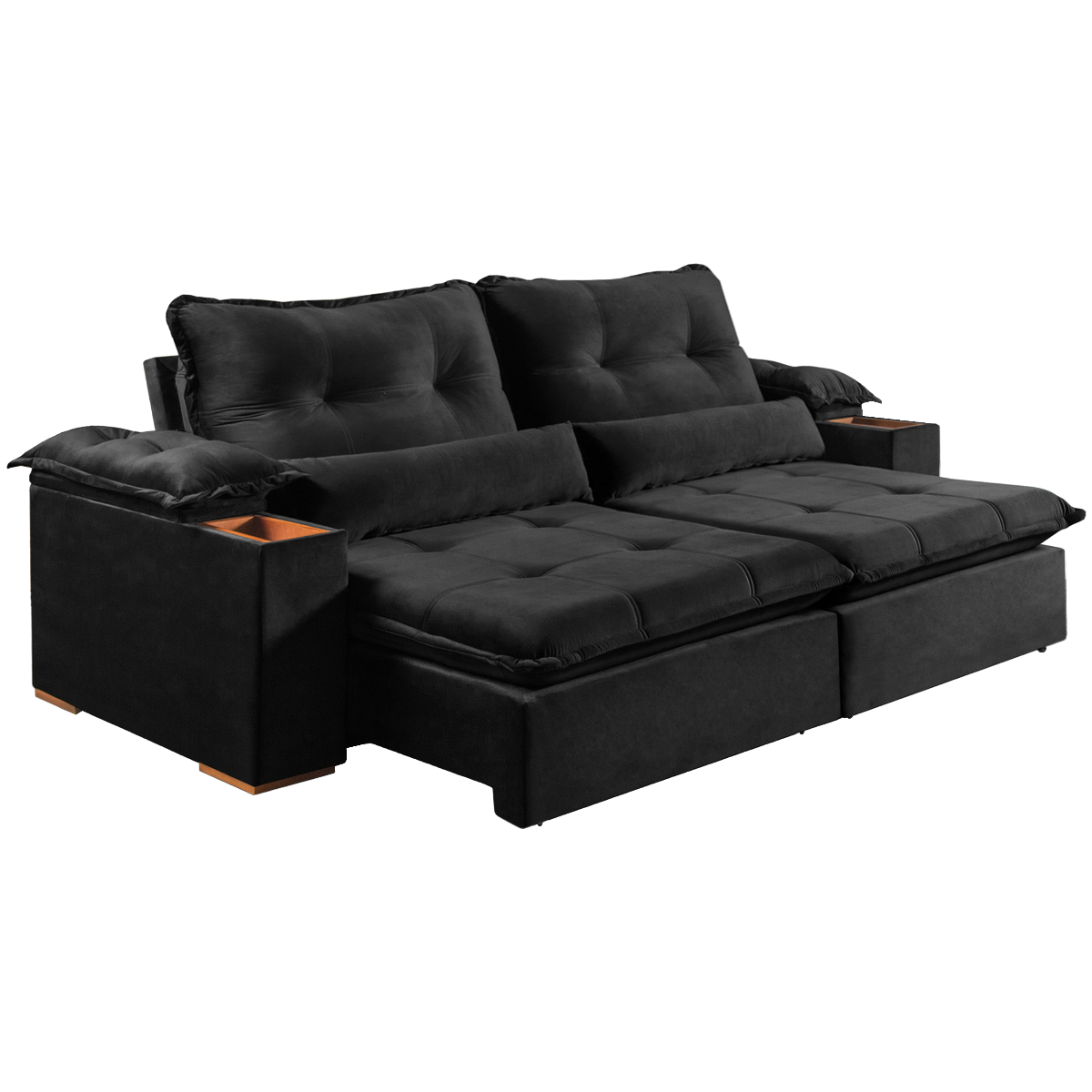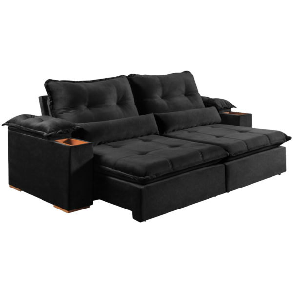 Sofá Retrátil e Reclinável Marrocos 2,50 m Veludo Preto 5040 – VICAM ESTOFADOS