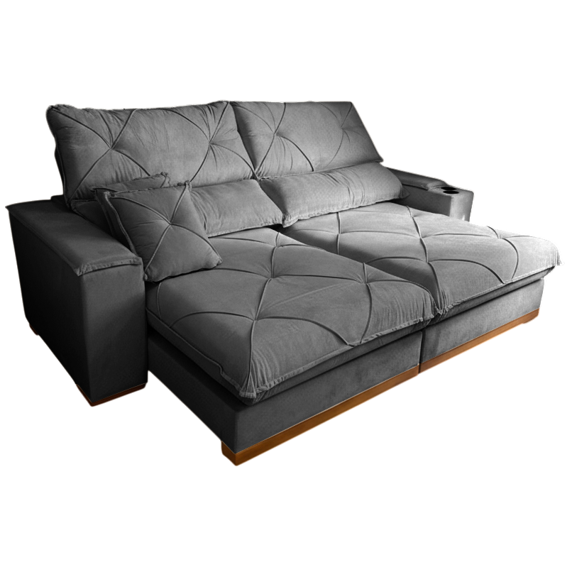 Sofa Retratil e Reclinavel Milano 2,50 m Veludo Cinza 101 – ZARAT ESTOFADOS