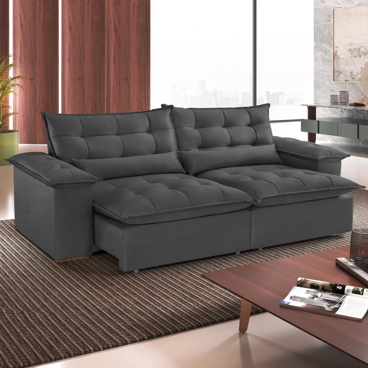 Sofá Retrátil e Reclinável Niger 2,50 m Veludo Cinza B010 – TREVO ESTOFADOS