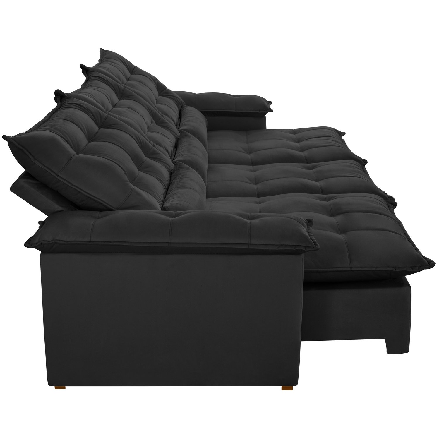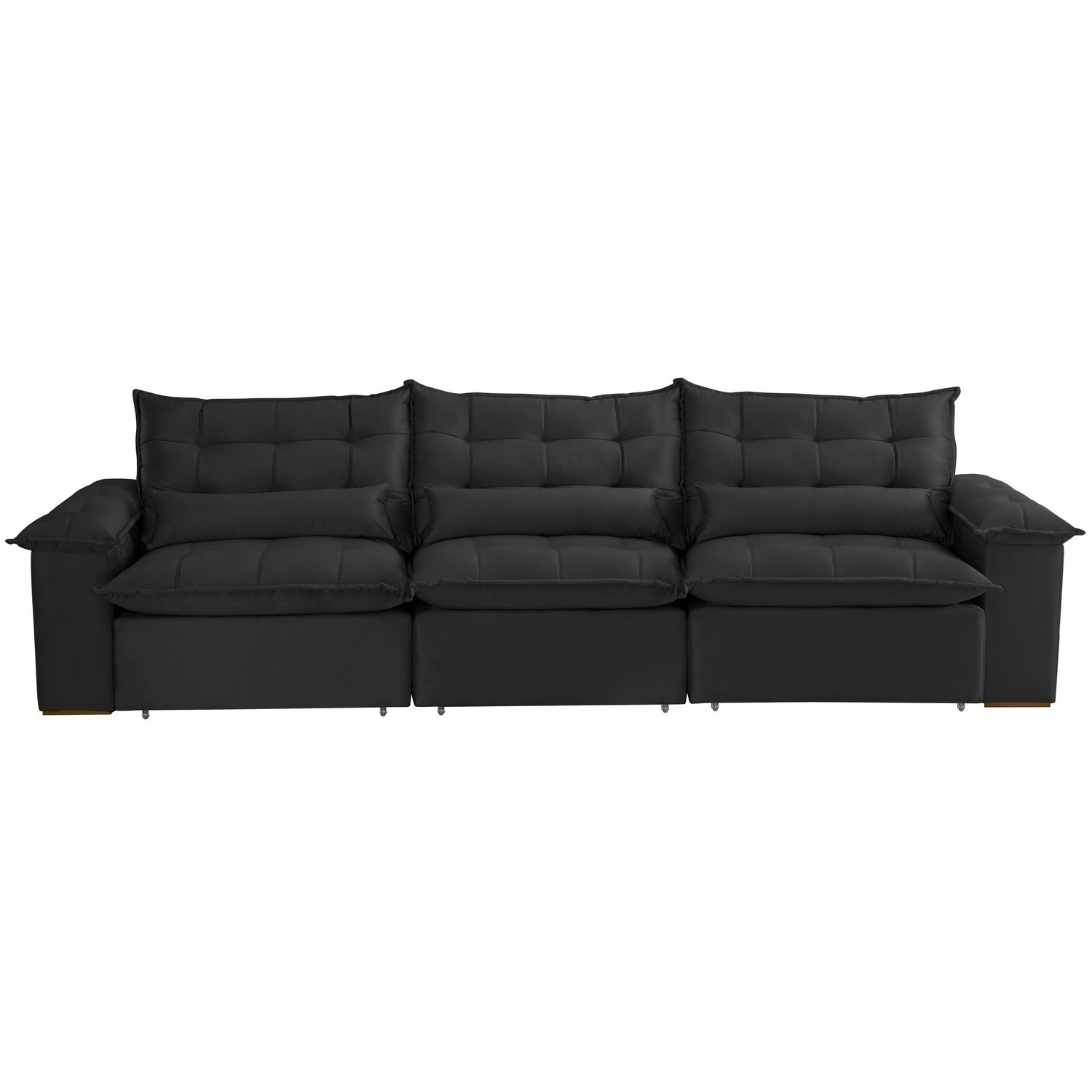 Sofá Retrátil e Reclinável Niger 3,10 m Veludo Preto B013 – TREVO ESTOFADOS