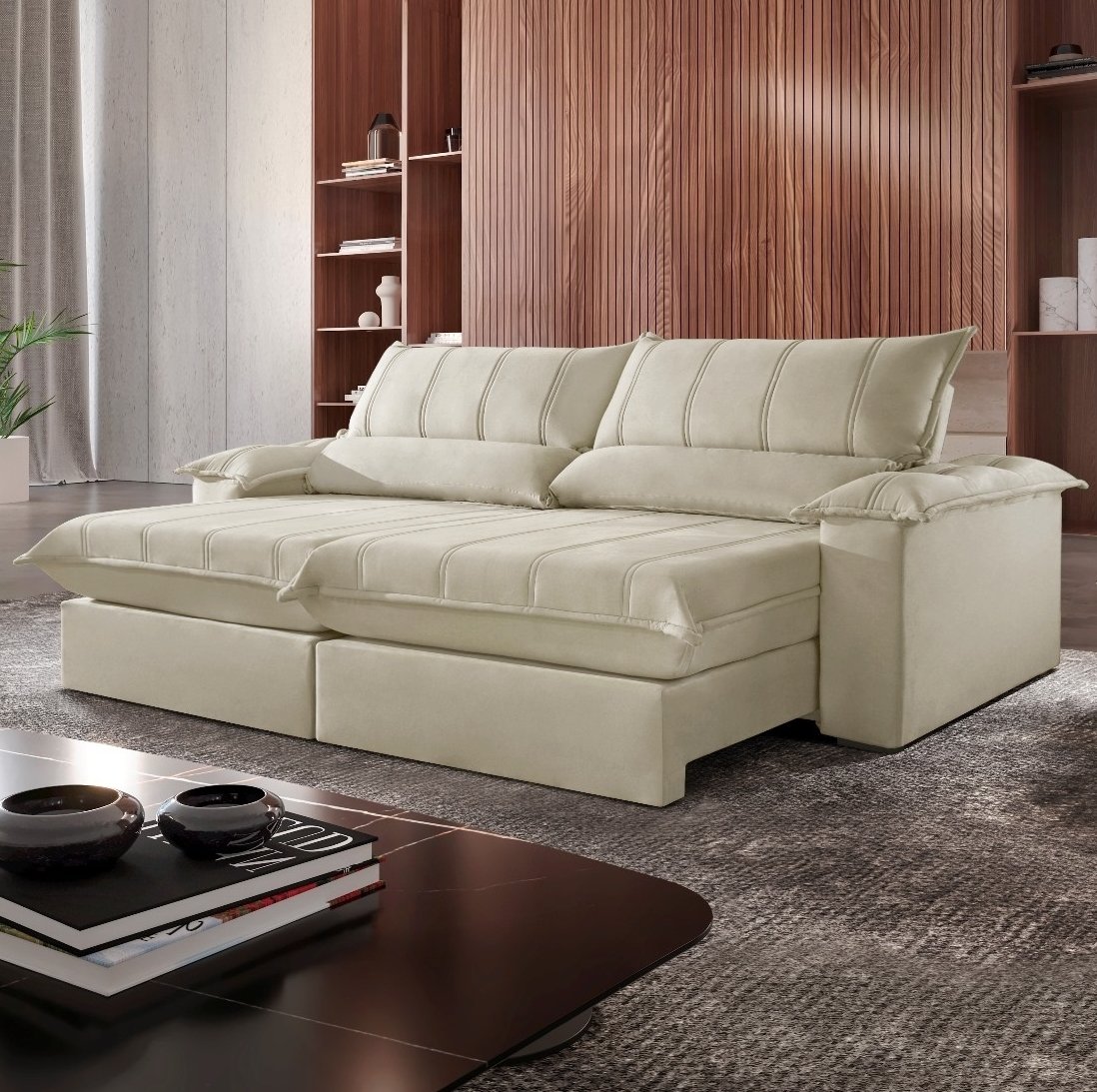 Sofá Retrátil e Reclinável Porto Bello Veludo Jolie Bege 240 – MONTANO ESTOFADOS