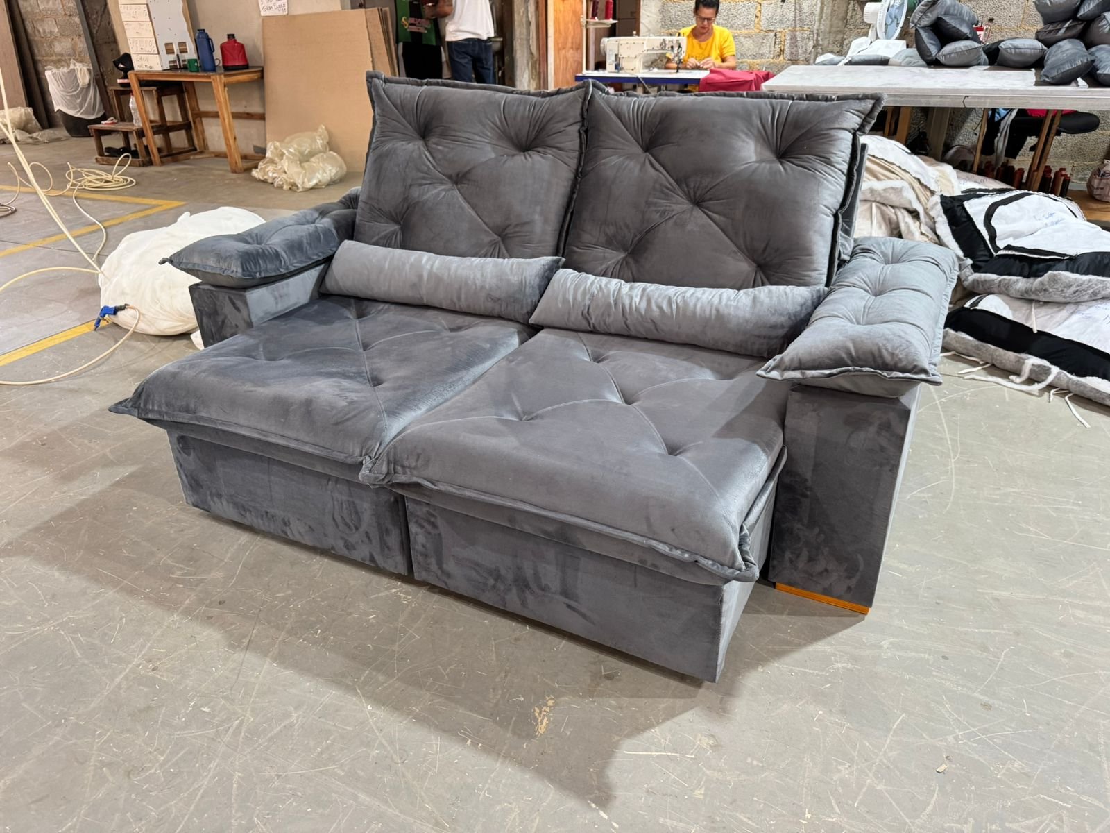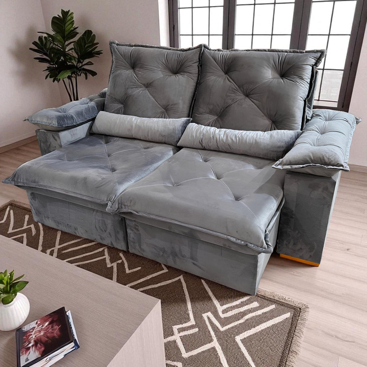 Sofá Retrátil e Reclinável Porto Madero 2,00 m Veludo Cinza Grafite – IMPERIAL DECOR