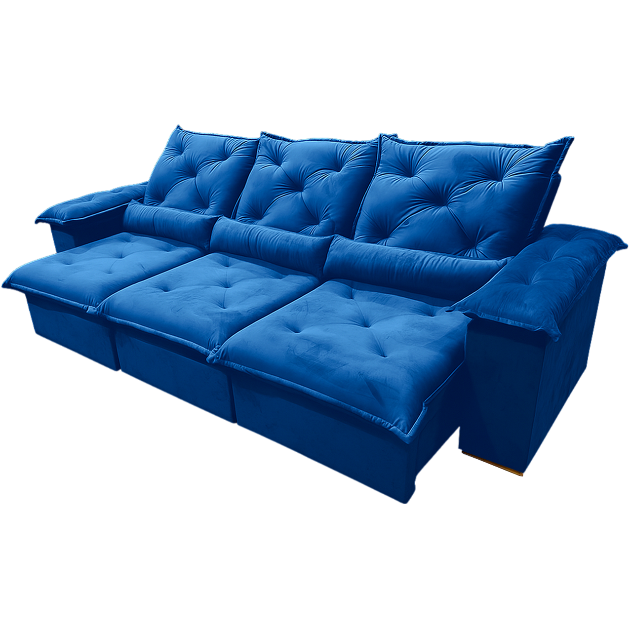 Sofá Retrátil e Reclinável Porto Madero 2,75 m Veludo Azul – IMPERIAL DECOR