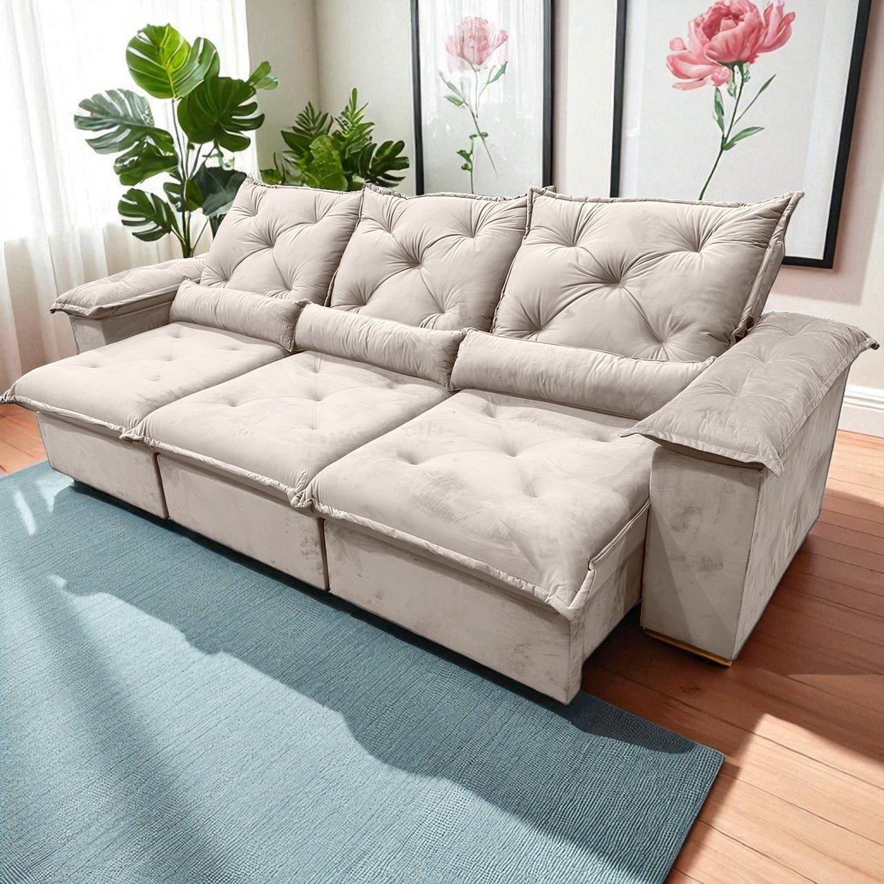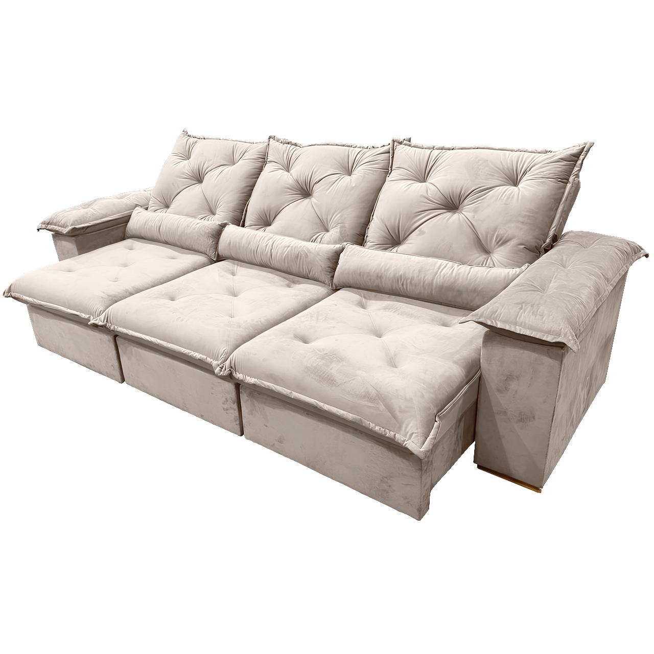 Sofá Retrátil e Reclinável Porto Madero 2,75 m Veludo Bege – IMPERIAL DECOR