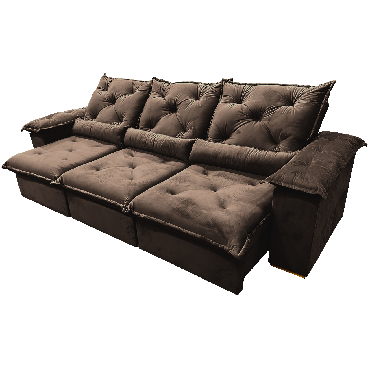 Sofá Retrátil e Reclinável Porto Madero/Brasão 2,75 m Veludo Marrom – IMPERIAL DECOR