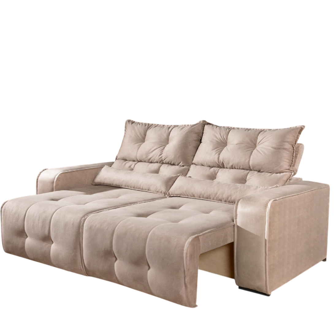 Sofá Retrátil e Reclinável Premier 2,00 m Veludo Bege – DECORAR ESTOFADOS