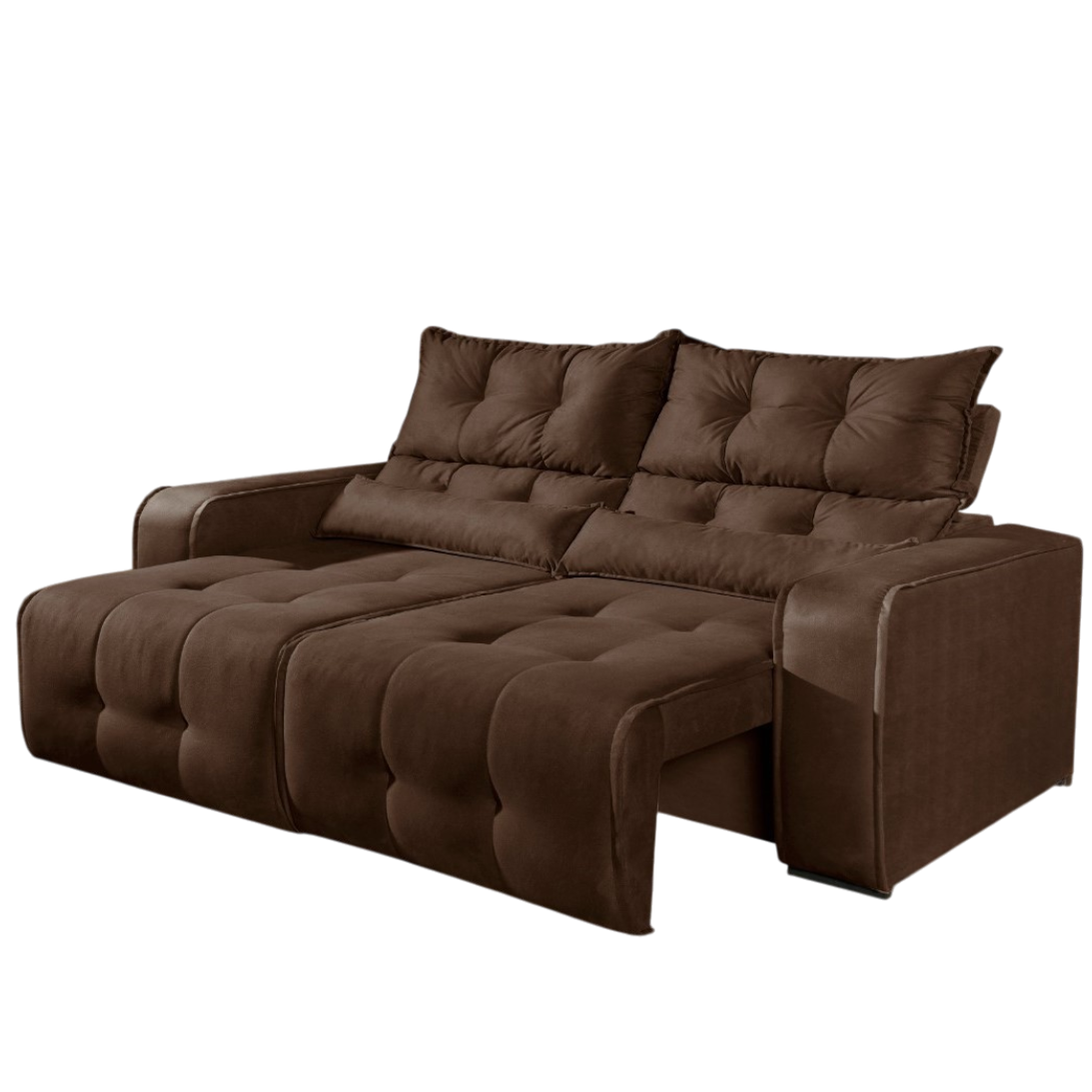 Sofá Retrátil e Reclinável Premier 2,00 m Veludo Marrom – DECORAR ESTOFADOS