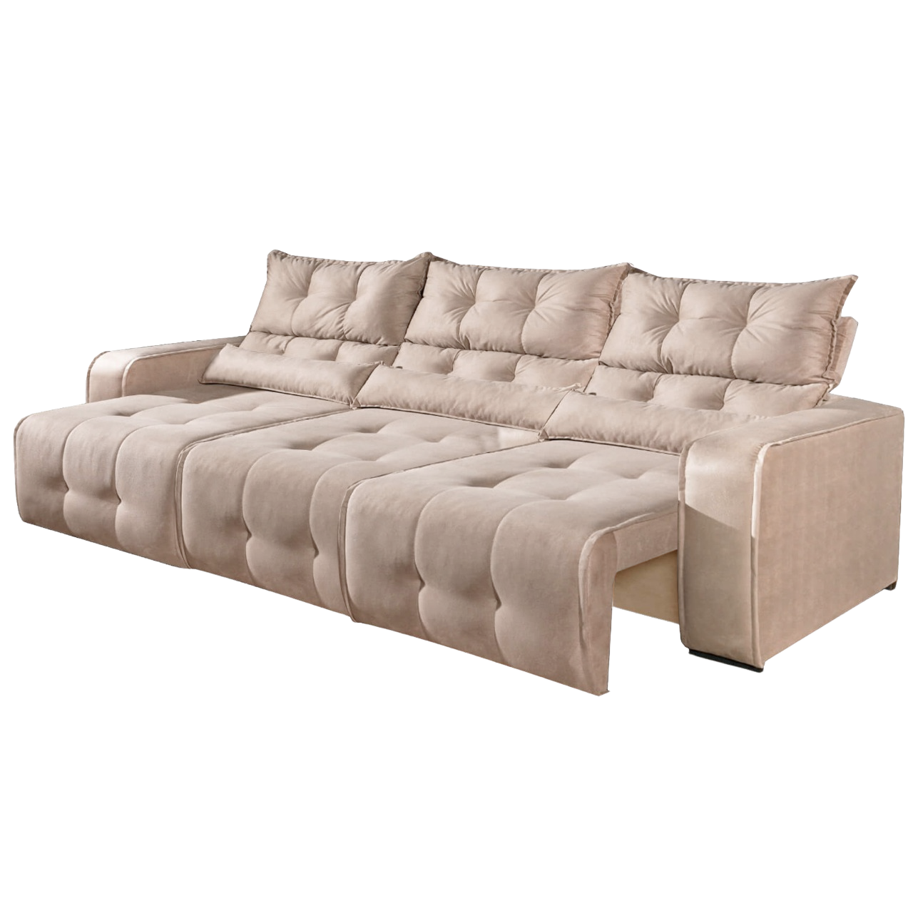 Sofá Retrátil e Reclinável Premier 2,50 m Veludo Bege – DECORAR ESTOFADOS