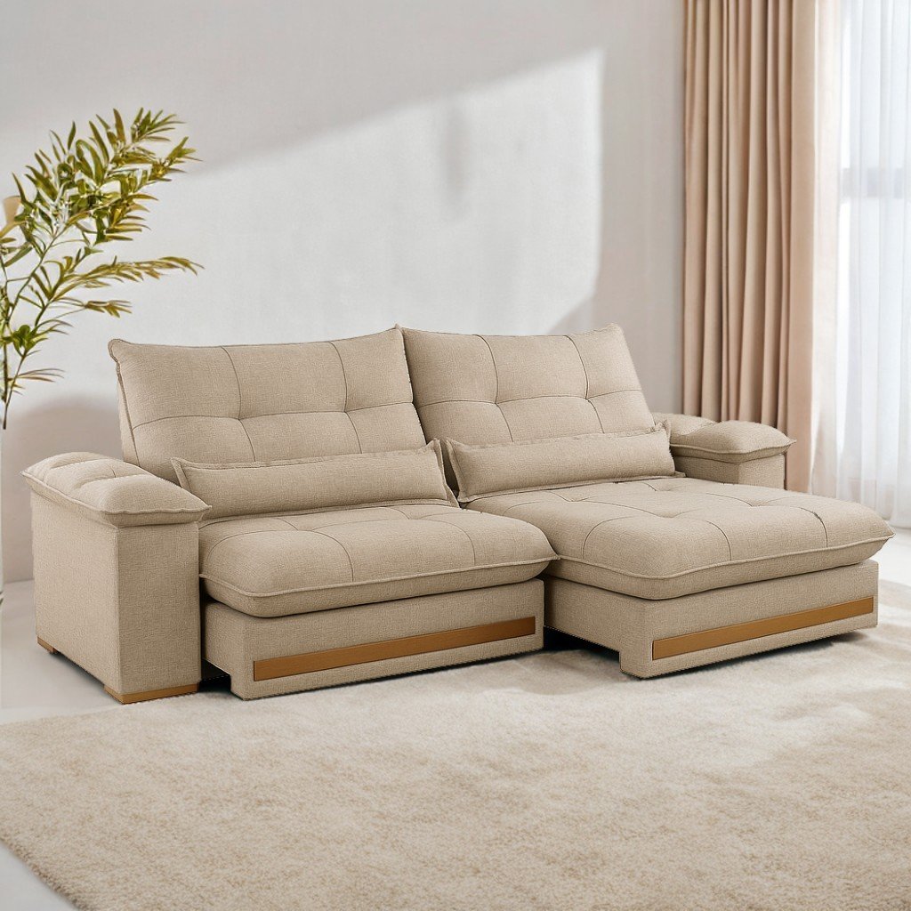Sofá Retrátil e Reclinável Qatar 2,00 m Linho Bege A227 – TREVO ESTOFADOS