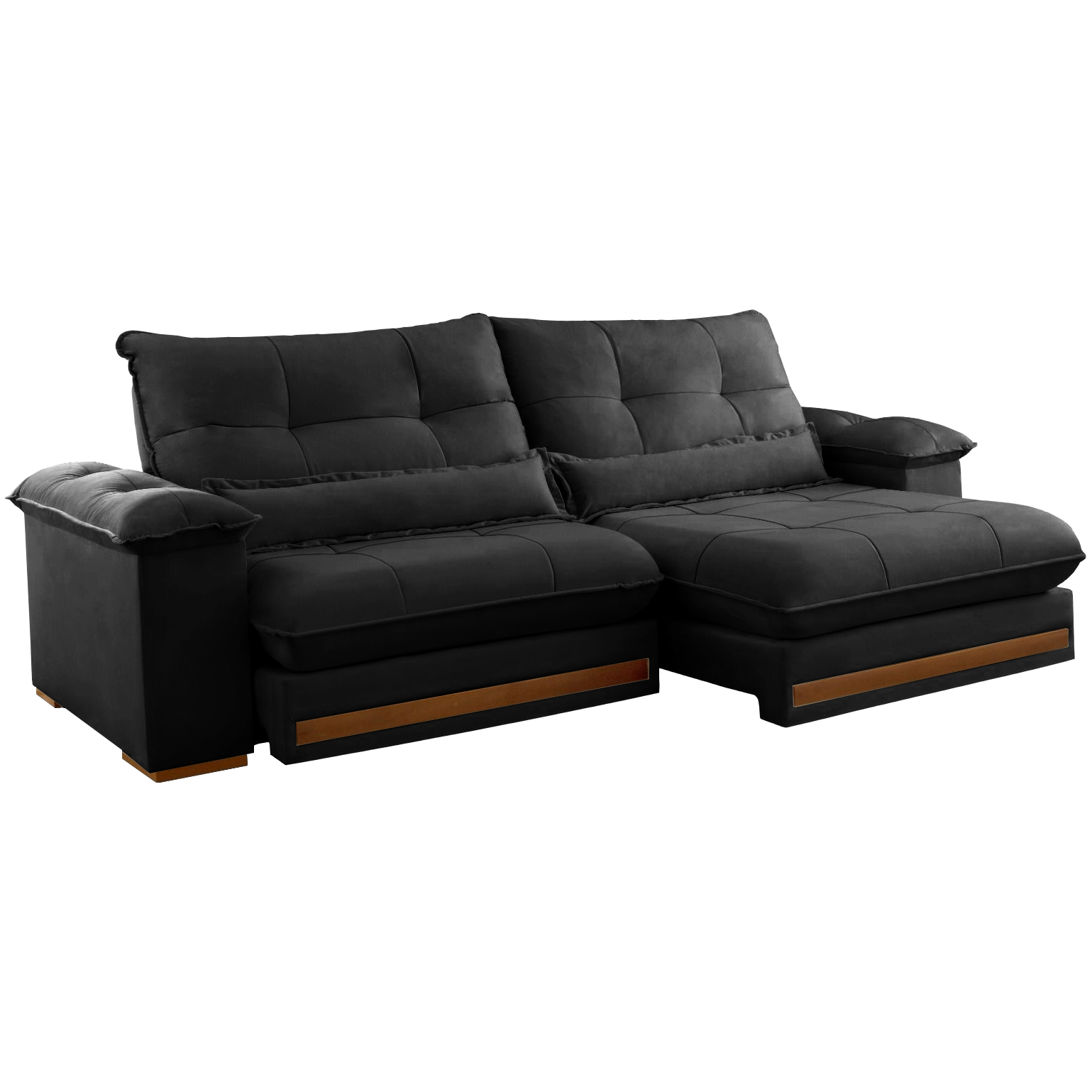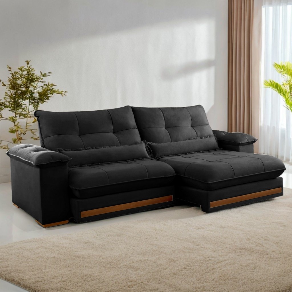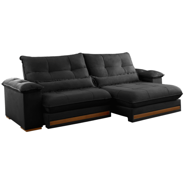 Sofá Retrátil e Reclinável Qatar 2,50 m Veludo Preto B013 – TREVO ESTOFADOS