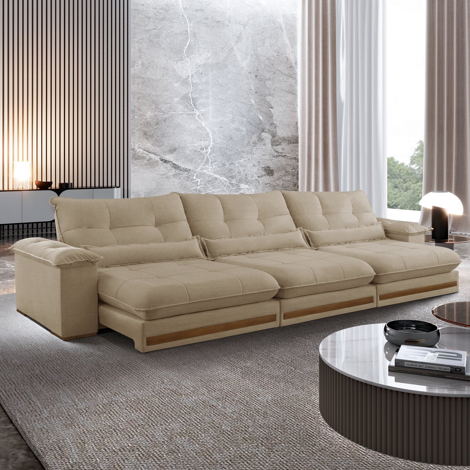 Sofá Retrátil e Reclinável Qatar 3,50 m Linho Bege A227 – TREVO ESTOFADOS