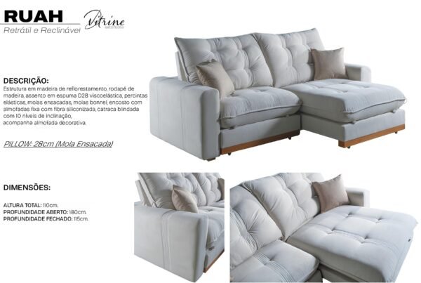 Sofá Retrátil e Reclinável Ruah 2,50 m Veludo Bege 2020 – D’VITRINE