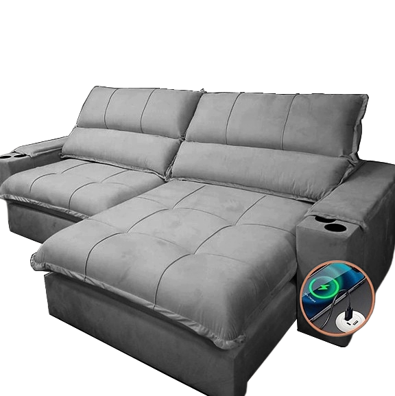 Sofá Retrátil e Reclinável Zeus 2,50 m Cinza – ZARAT ESTOFADOS
