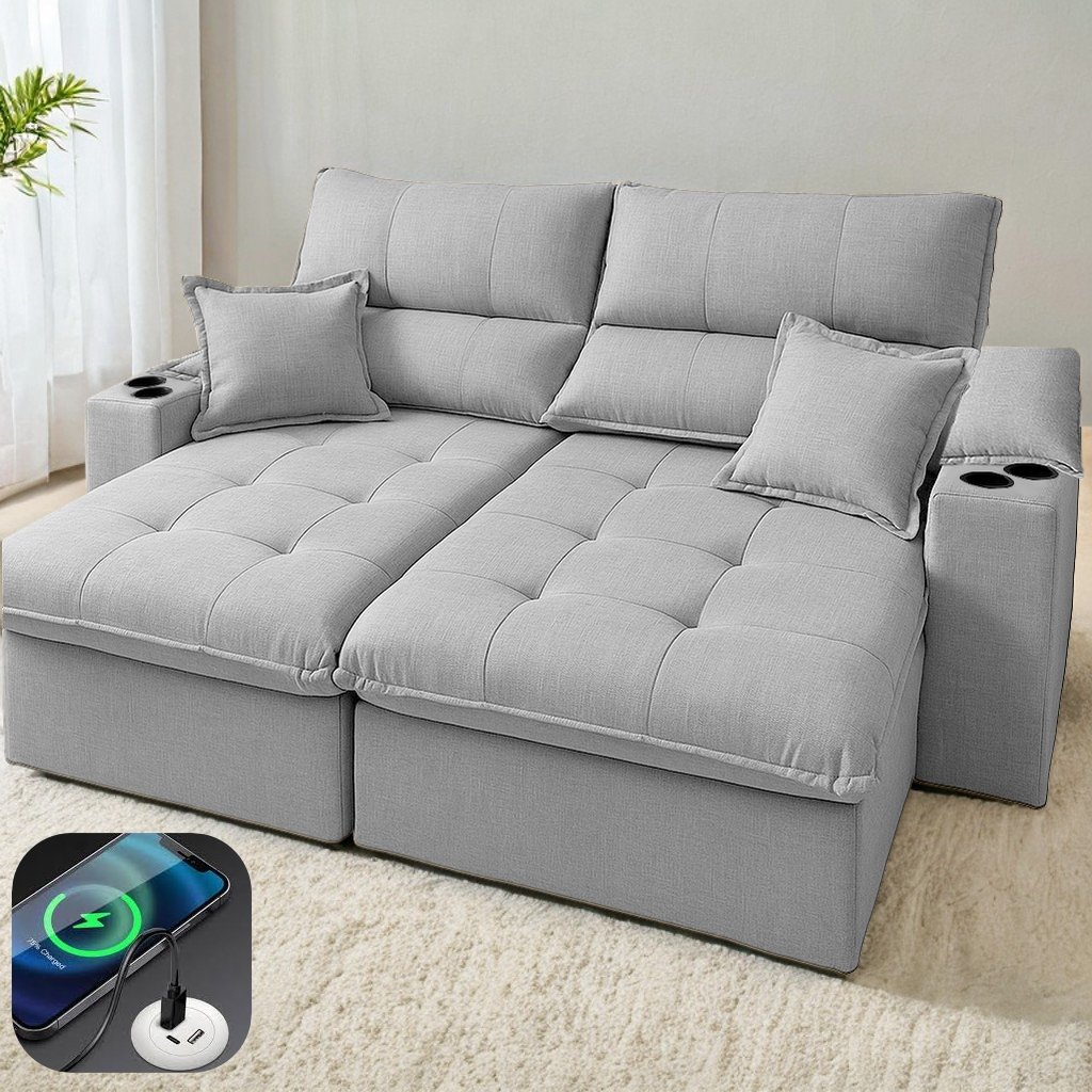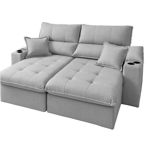 Sofá Retrátil e Reclinável Zeus 2,50 m Linho Cinza – ZARAT ESTOFADOS