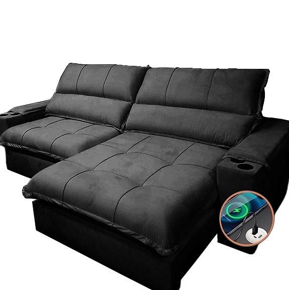 Sofá Retrátil e Reclinável Zeus 2,50 m Preto – ZARAT ESTOFADOS