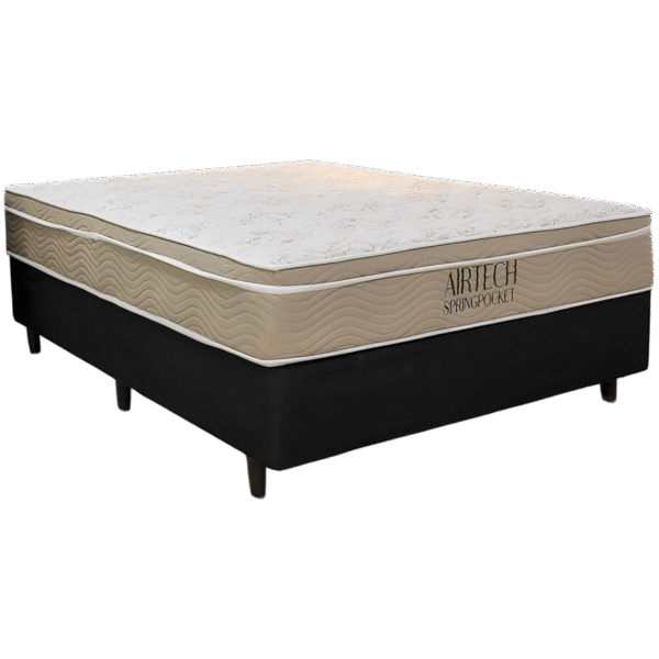 Colchão Casal Airtech Springpocket + Base Box Simples Corino Preto – ORTOBOM + BIOSTAR