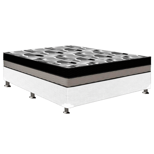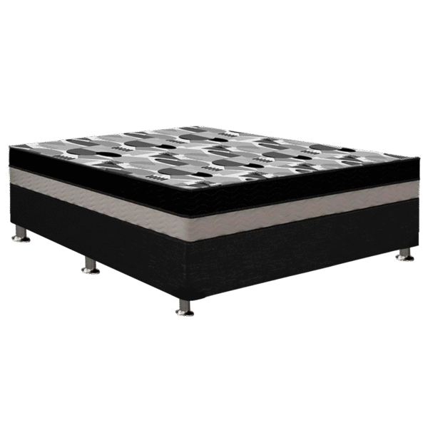 Colchão Casal ISO Dupla Face + Base Box Simples Corino Preto – ORTOBOM + ALTO NÍVEL CAMAS E COLCHÕES