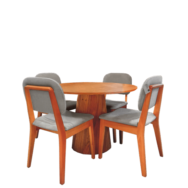 Mesa Salinas 120 Cinamomo/Off White com 4 Cadeiras Pérola Linho Bege– AVALON DECOR + DOBUÊ MOVELARIA